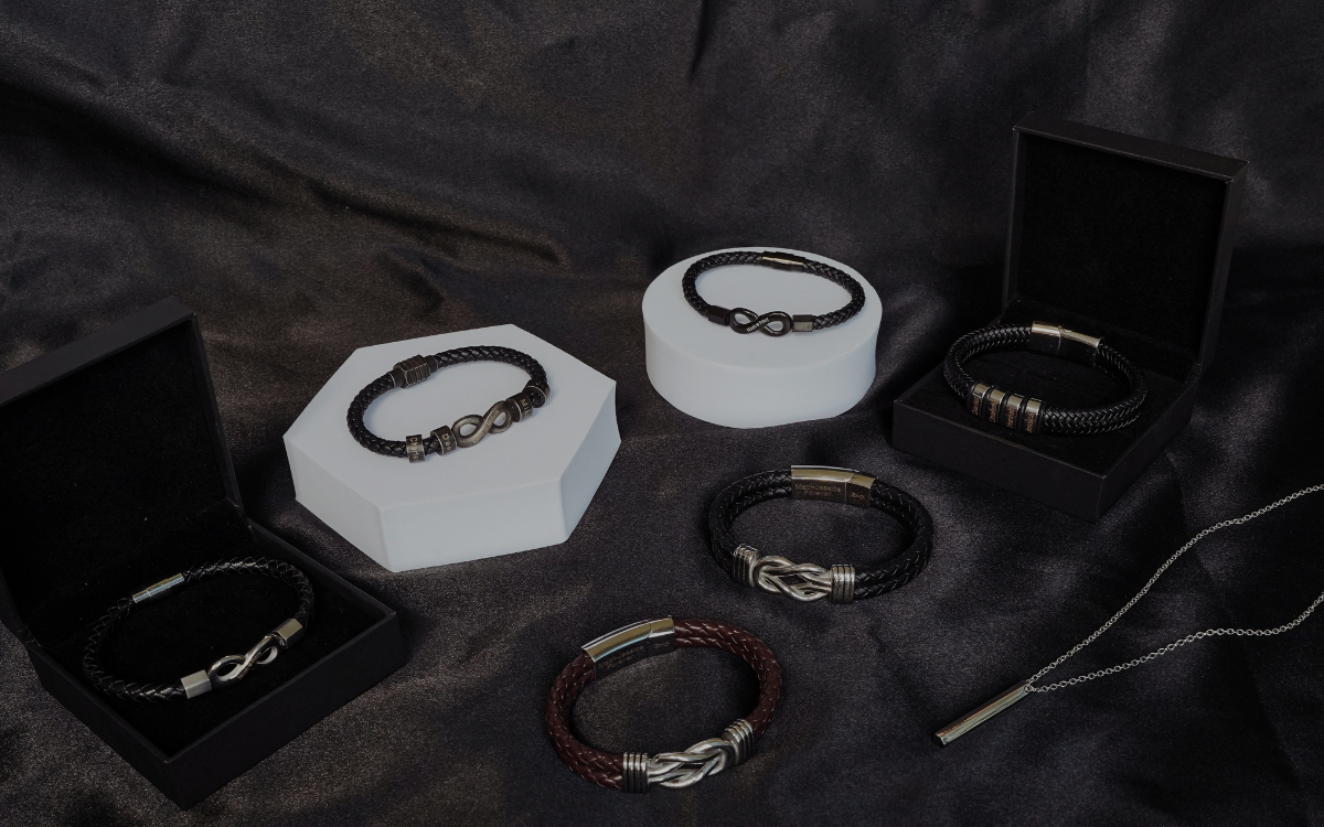 Son's Infinity Knot Bracelet Gift Set with Engraved Name