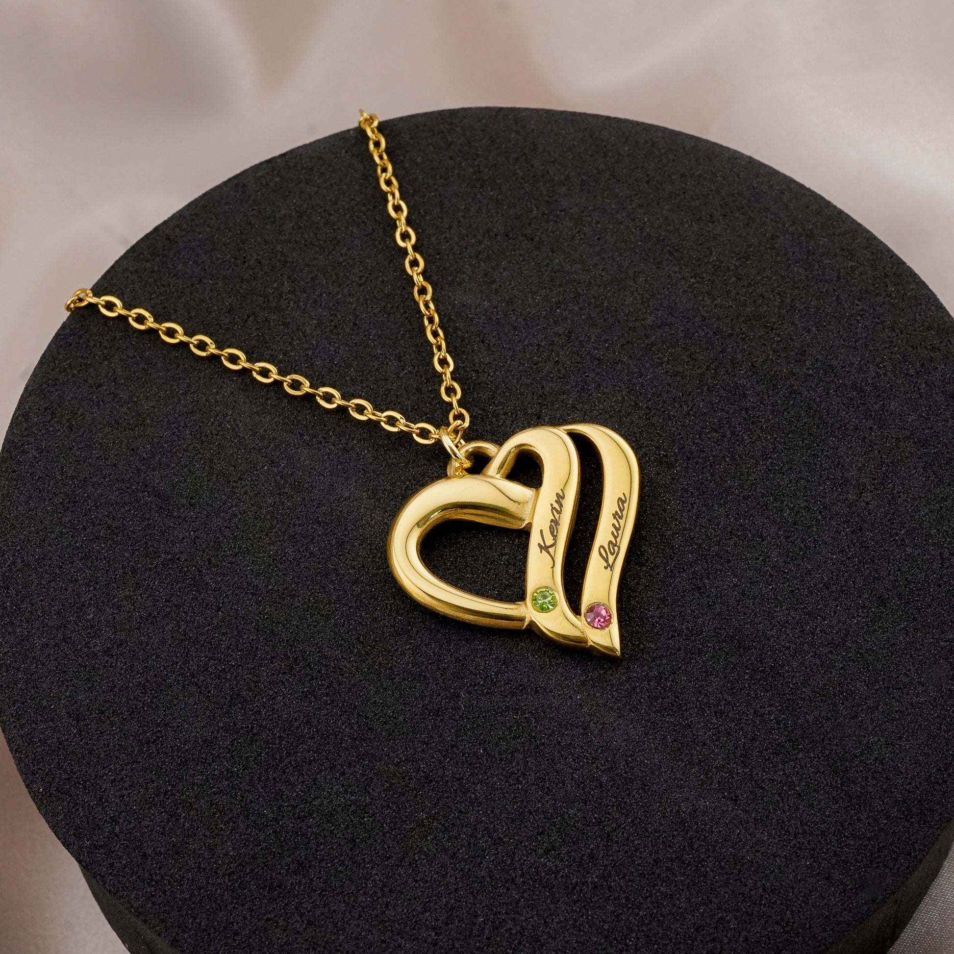 Personalisierte Herz-Halskette mit Doppelgravur & Geburtsstein