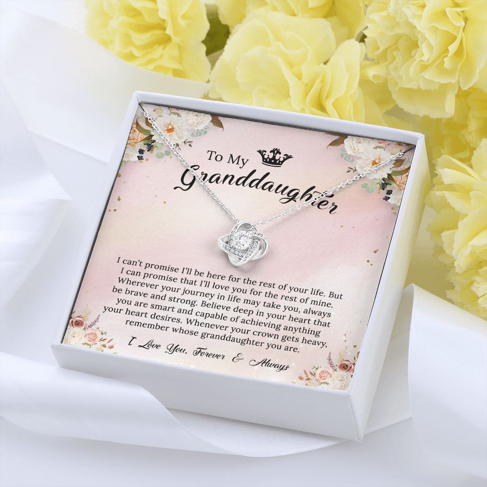 El collar Love Knot representa un vínculo inquebrantable entre dos almas. Lleva un precioso colgante adornado con cristales de circonita cúbica de primera calidad. Sorprende hoy mismo a tu nieta con este magnífico regalo.