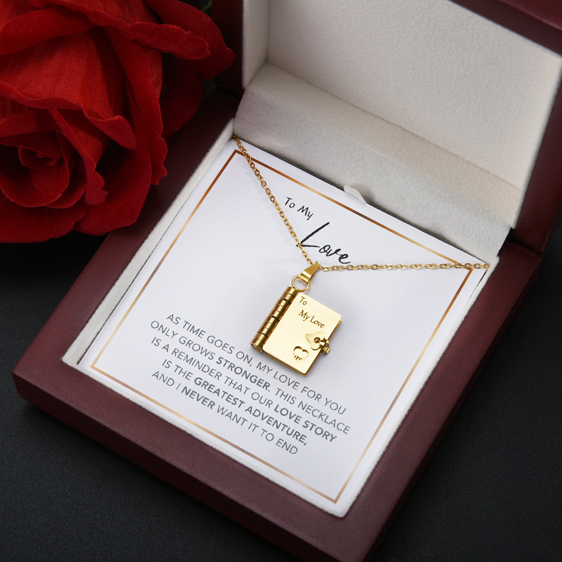 Graba cada página para crear una breve historia de lo que sientes por ella. Siempre tendrá con ella un recuerdo de tu amor. Este toque especial convierte un bonito regalo en un preciado recuerdo.