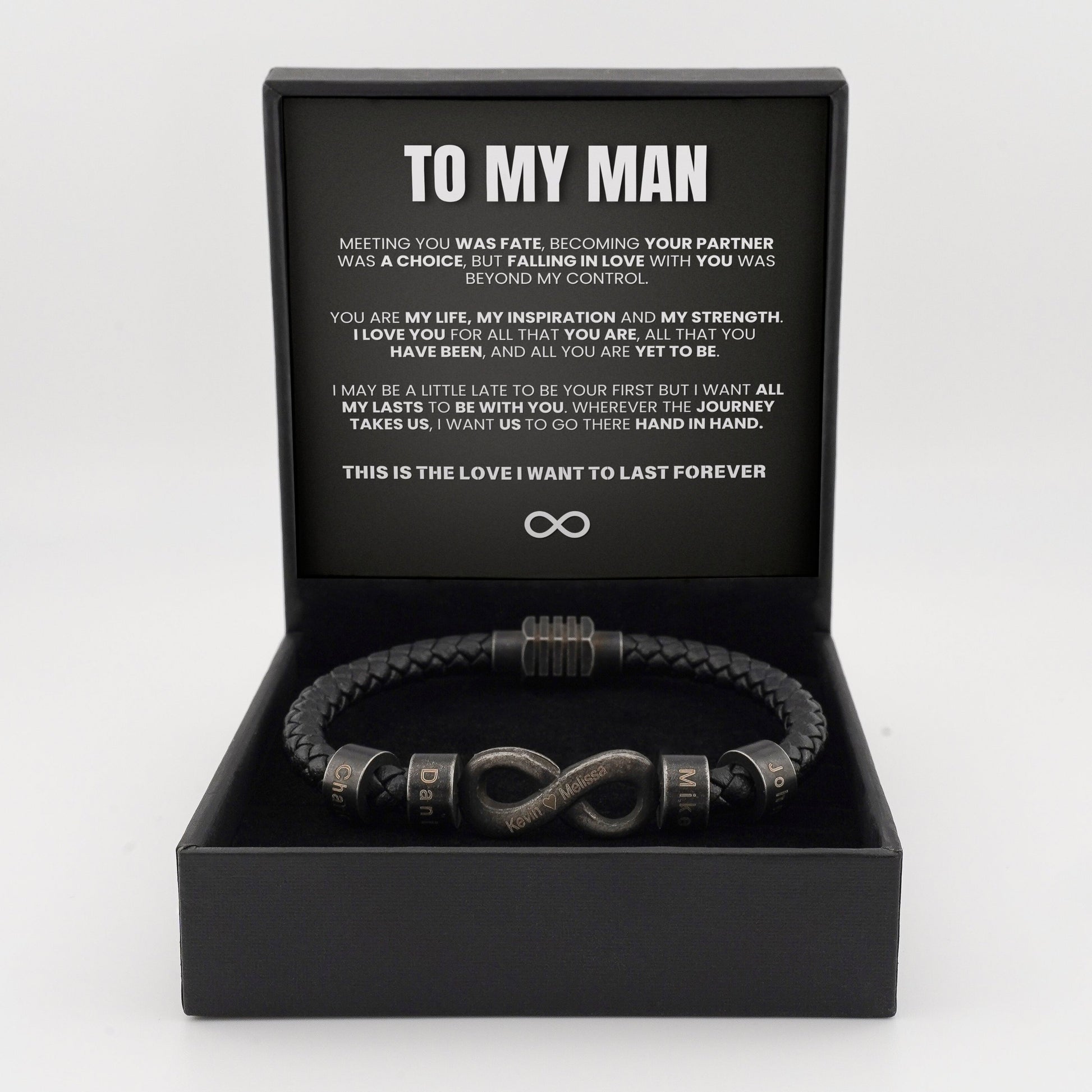 Grabaremos hasta 6 nombres de familiares en las cuentas, junto a un símbolo especial de infinito con sus nombres. Es como regalarle un recuerdo de sus seres queridos para que lo lleve a todas partes.