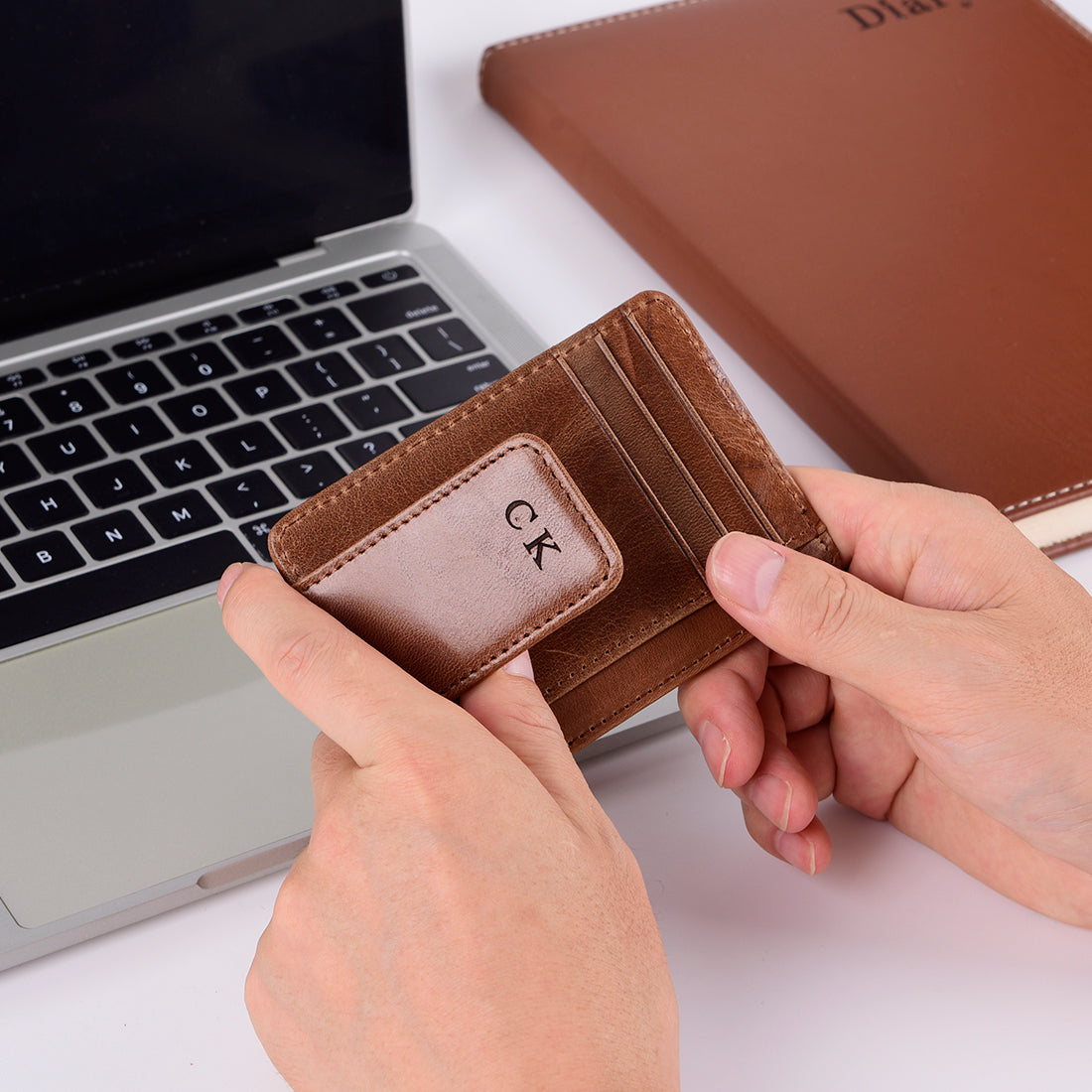 La cartera personalizada y el tarjetero metálico son recordatorios diarios de tu amor. Llevará consigo tu sincero mensaje allá donde vaya. Hazle un regalo que pueda utilizar a diario.