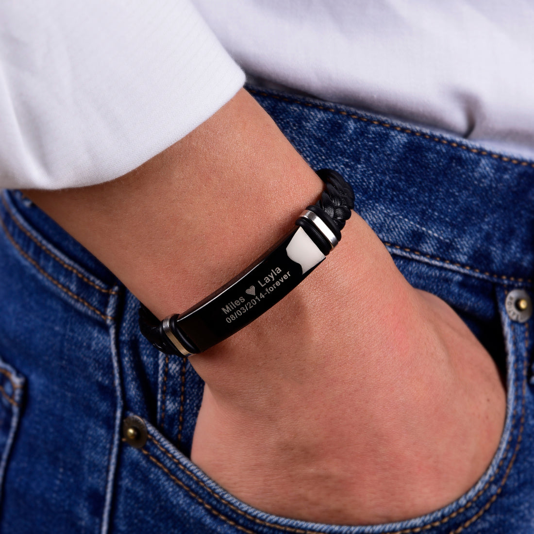 Show your husband how much he means to you. Engraved with your names and anniversary date, this bracelet will be a beautiful symbol of your everlasting love and commitment